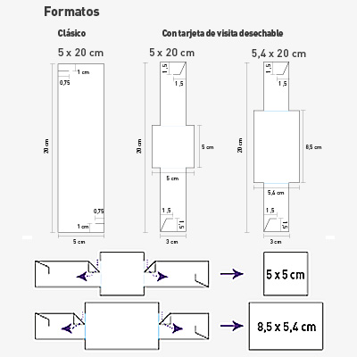 Forma con tarjeta de visita de 5×5 cm, Forma con tarjeta de visita de 8,5 x 5,4 cm